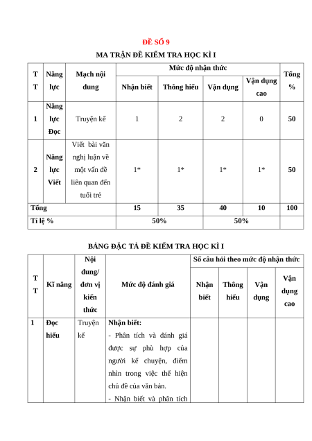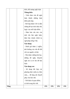 Mức độ nhận thức T Năng Mạch nội Tổng Vận dụng T lực dung Nhận biết Thông hiểu Vận dụng % cao Năng 1 lực Truyện kể 1 2 2 0 50 Đọc Viết bài văn