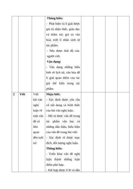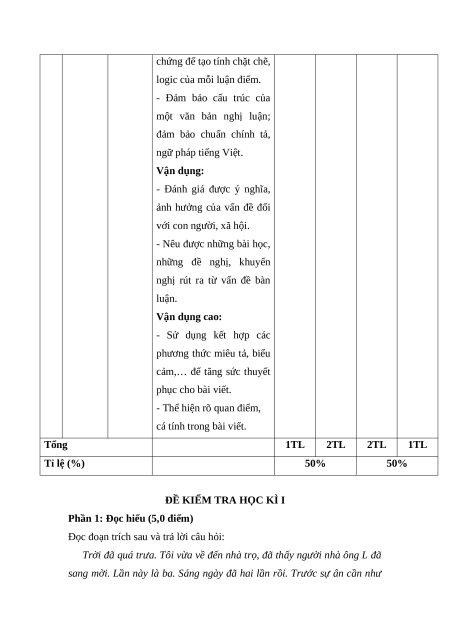 Năng nghị luận về 2 lực một vấn đề có 1* 1* 1* 1* 50 Viết liên quan đến tuổi trẻ Tổng 15 35 40 10 100 Tỉ lệ % 50% 50%