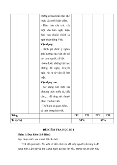 Mức độ nhận thức T Năng Mạch nội Tổng Vận dụng T lực dung Nhận biết Thông hiểu Vận dụng % cao Năng 1 lực Phóng sự 1 2 2 0 50 Đọc Viết bài văn