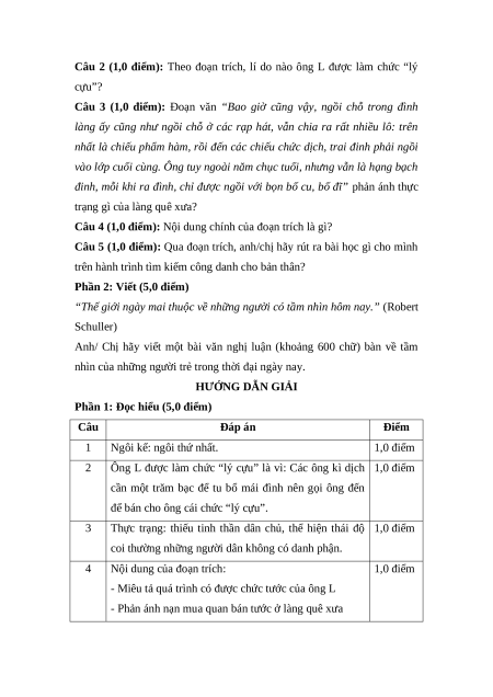 Câu 1 (1,0 điểm): Đoạn trích được kể ở ngôi thứ mấy?