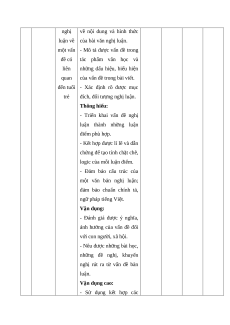 Số câu hỏi theo mức độ nhận thức dung/ T Vận Kĩ năng đơn vị Mức độ đánh giá Nhận Thông Vận T dụng kiến biết hiểu dụng cao thức 1 Đọc Thơ Nhận biết: hiểu