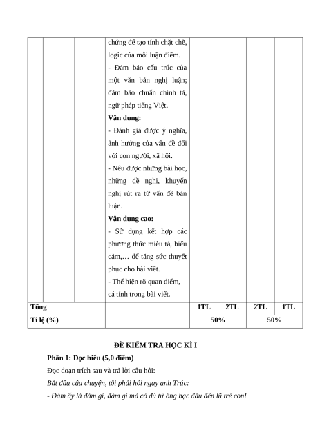 Năng nghị luận về 2 lực một vấn đề có 1* 1* 1* 1* 50 Viết liên quan đến tuổi trẻ Tổng 15 35 40 10 100 Tỉ lệ % 50% 50%