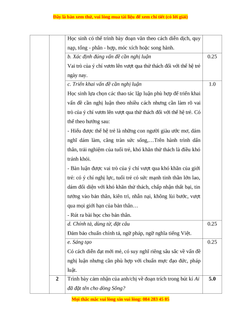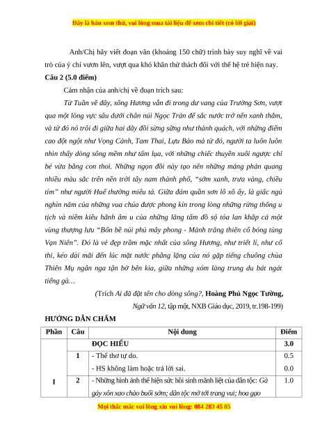 trò của ý chí vươn lên, vượt qua khó khăn thử thách đối với thế hệ trẻ hiện nay. Câu 2 (5.0 điểm)