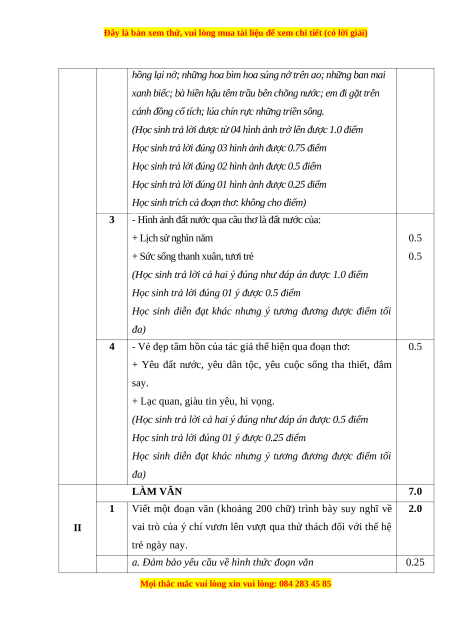 Học sinh diễn đạt khác nhưng ý tương đương được điểm tối đa) LÀM VĂN 7.0 1