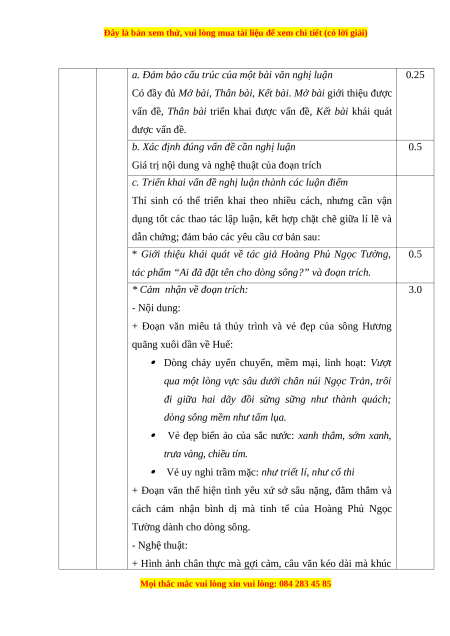 b. Xác định đúng vấn đề cần nghị luận 0.25