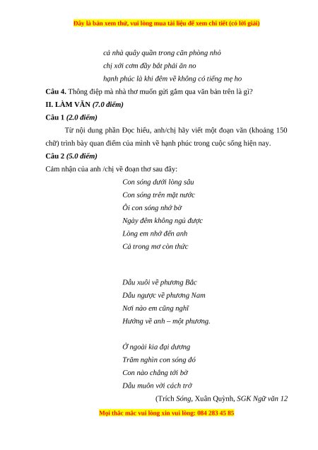 Đây là bản xem thử, vui lòng mua tài liệu để xem chi tiết (có lời giải)