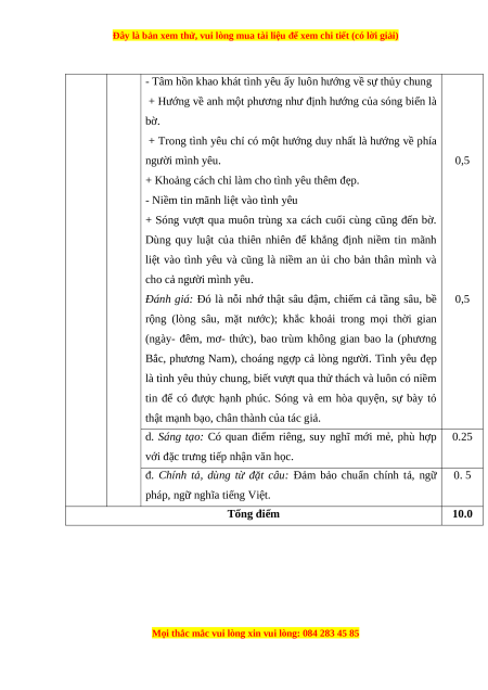 d. Sáng tạo: Cách diễn đạt độc đáo, có suy nghĩ riêng về vấn 0.25 đề nghị luận.