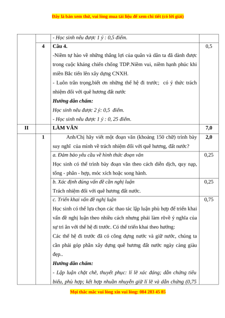 - Học sinh nêu được 1 ý : 0, 25 điểm. II LÀM VĂN 7,0 1
