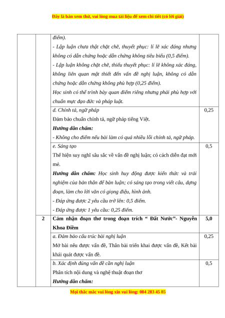 - Không cho điểm nếu bài làm có quá nhiều lỗi chính tả, ngữ pháp. e. Sáng tạo 0,5