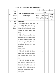 Mức độ kiến thức, kĩ năng STT Vận đề/Nội cần đánh giá Nhận Thôn Vận dụng dung biết g hiểu dụng cao 1 Văn Nhận biết: bản