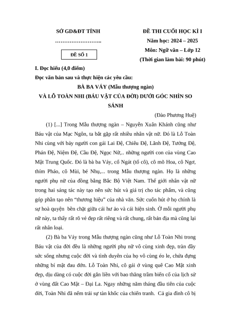 - Tailieugiaovien.com.vn giới thiệu bộ đề Cuối kì 1 gồm đầy đủ ma trận, bảng đặc tả và lời giải chi tiết môn Ngữ văn 12 Kết nối tri thức mới nhất năm 2024 nhằm giúp Giáo viên có thêm tài liệu tham khảo ra đề thi Ngữ văn 12.