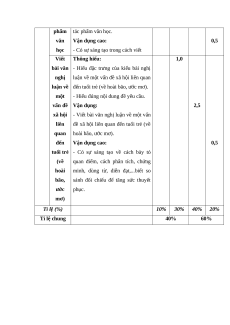 Viết nghị luận về một vấn đề xã hội liên 1 2,5 0,5 40% quan đến tuổi trẻ (về hoài bão, ước mơ) Tổng 1,0 3,0 4,0 2,0 Tỉ lệ (%) 10% 30% 40% 20% 100% Tỉ lệ chung 40% 60%