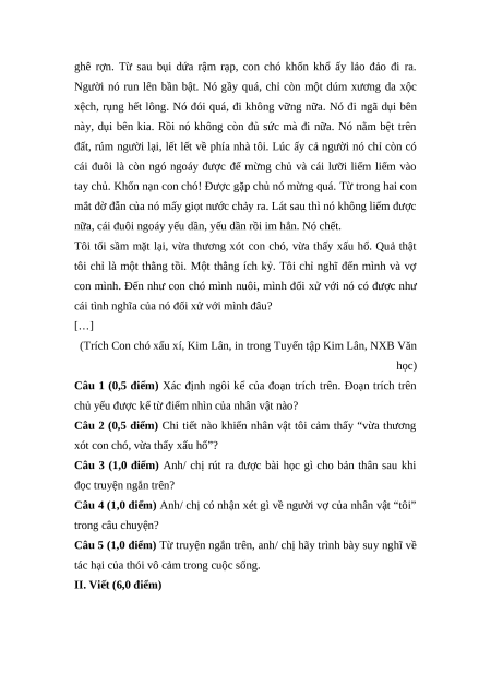 Đề thi Cuối kì 1 Ngữ văn 12 Kết nối tri thức (Đề 9)