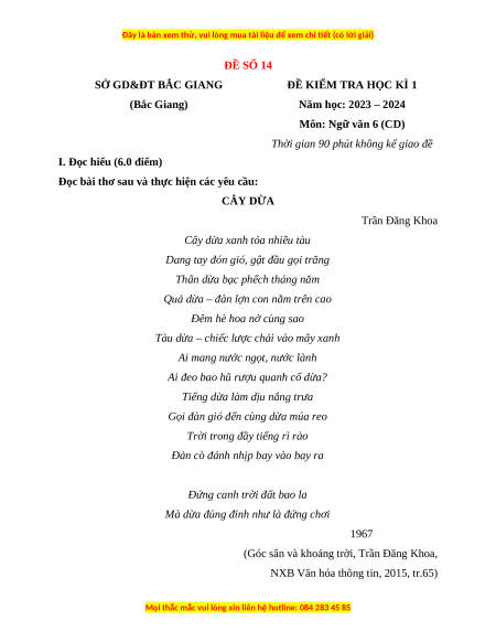 Đọc bài thơ sau và thực hiện các yêu cầu: CÂY DỪA Trần Đăng Khoa