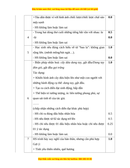- HS chỉ nêu được 01 dấu hiệu nhân hóa hoặc chỉ nêu được 0.25 01 ý tác dụng