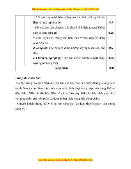 - Học sinh chỉ nêu được một ý phù hợp: 0.5 điểm
