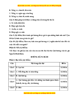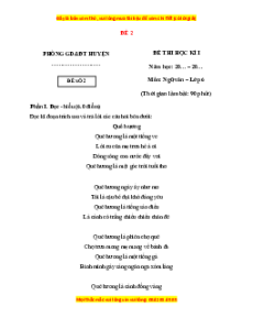 Câu 2 C. Mỗi dòng thơ có năm tiếng 0,5 điểm Câu 3 B. Quê hương 0,5 điểm