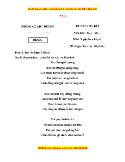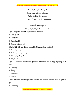 Câu 1. Đoạn thơ trên được viết theo thể thơ nào? A. Thơ lục bát B. Thơ tự do C. Thơ năm chữ