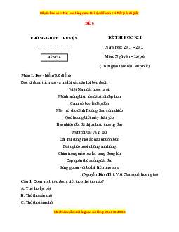 - Tailieugiaovien.com.vn giới thiệu bộ 10 đề thi cuối kì 1 gồm đầy đủ ma trận và lời giải chi tiết môn Ngữ văn 6 bộ Cánh diều mới nhất nhằm giúp Giáo viên có thêm tài liệu tham khảo ra đề thi Ngữ văn lớp 6.
