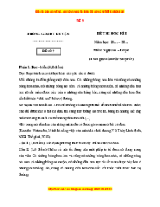 Năm học: 20… – 20… ĐỀ SỐ 9