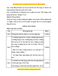 Lưu ý: Chỉ ghi điểm tối đa khi thí sinh đáp ứng đủ các yêu