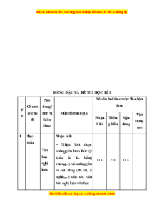 BẢNG ĐẶC TẢ ĐỀ THI HỌC KÌ I