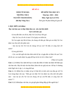 Câu 1. (2.0 điểm) Xác định thể loại và nêu đặc điểm về nhân vật được thể hiện qua
