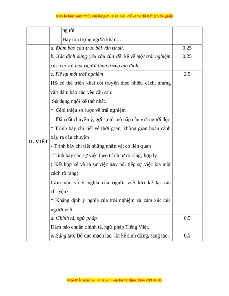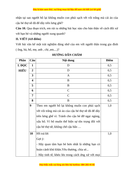 ( ông, bà, bố, mẹ, anh , chị ,em....)? HƯỚNG DẪN CHẤM Phần Câu Nội dung Điểm I. ĐỌC 1 D 0,5 HIỂU 2 D 0,5 3 A 0,5 4 B 0,5 5 B 0,5 6 C 0,5 7 C 0,5 8 B 0,5 9