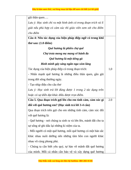 Câu 5: Qua đoạn trích gợi lên cho em tình cảm, cảm xúc gì đối với quê hương em?