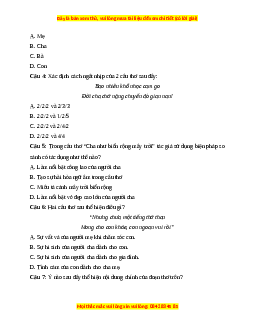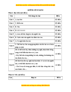 Phần I. Đọc hiểu (6,0 điểm) Câu Nội dung cần đạt Điểm Câu 1 A. Lục bát 0,5 điểm Câu 2 C. Biểu cảm 0,5 điểm Câu 3 B. Cha 0,5 điểm Câu 4 D. 2/2/2 và 4/4 0,5 điểm