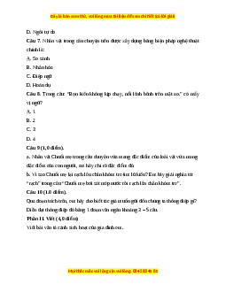 Câu 7. Nhân vật trong câu chuyện trên được xây dựng bằng biện pháp nghệ thuật chính là: A. So sánh B. Nhân hóa C. Điệp ngữ D. Hoán dụ