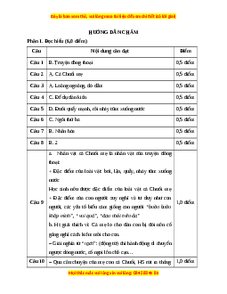 Câu 6 C. Ngôi thứ ba 0,5 điểm Câu 7 B. Nhân hóa 0,5 điểm Câu 8 B. 2 0,5 điểm