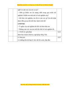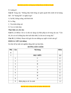 Em hãy kể lại một trải nghiệm đáng nhớ của bản thân. HƯỚNG DẪN CHẤM Phầ Câu Nội dung Điểm n I ĐỌC HIỂU 6,0 1 C 0,5 2 C 0,5 3 B 0,5 4 C 0,5 5 A 0,5 6 D 0,5 7 B 0,5 8 A 0,5 9