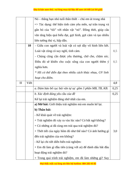 * HS có thể diễn đạt theo nhiều cách khác nhau, GV linh hoạt cho điểm. II Viết 4,0