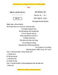 Câu 1. Văn bản trên được viết theo thể thơ nào? A. Thể thơ tự do. B. Thể thơ tám chữ. C. Thể thơ lục bát. D. Thể thơ sáu chữ.