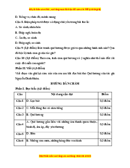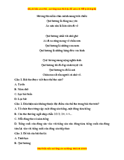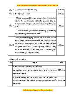 Câu 2 C. Mỗi dòng thơ có năm tiếng 0,5 điểm Câu 3 B. Quê hương 0,5 điểm