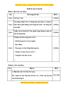 Lưu ý: Chỉ ghi điểm tối đa khi thí sinh đáp ứng đủ các yêu