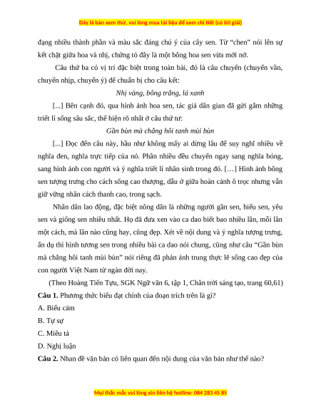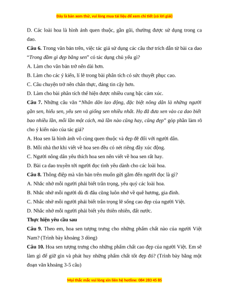 Câu 10. Hoa sen tượng trưng cho những phẩm chất cao đẹp của người Việt. Em sẽ