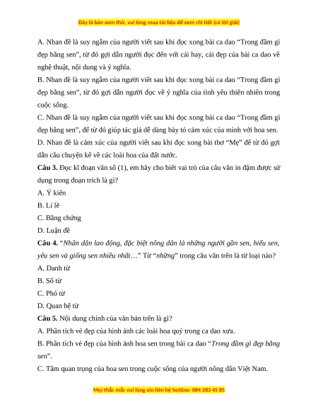 Câu 4. “Nhân dân lao động, đặc biệt nông dân là những người gần sen, hiểu sen,