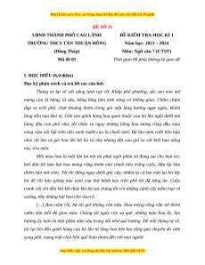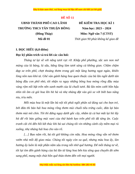 Môn: Ngữ văn 7 (CTST) Mã đề 01