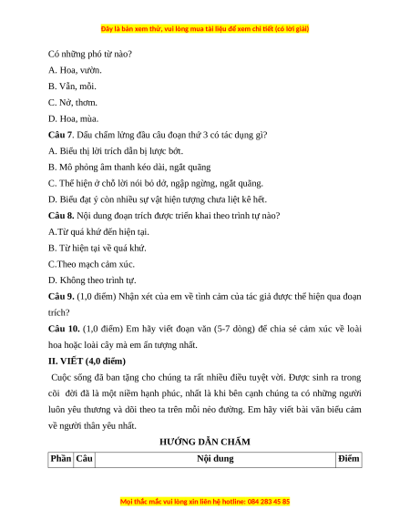 - Tình cảm cảm xúc của em dành cho loài cây hoạc loài hoa. II VIẾT 4,0