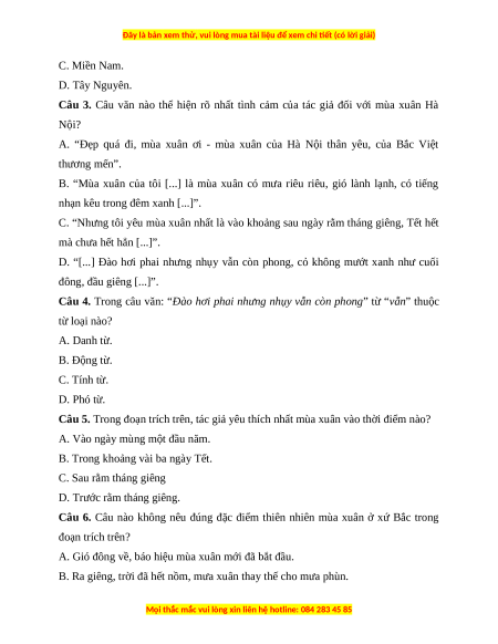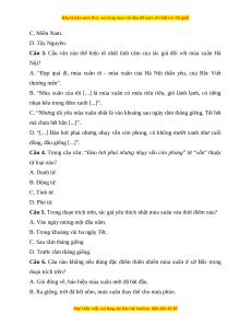 Câu 2. Tác giả đã tái hiện cảnh sắc thiên nhiên và không khí mùa xuân của vùng nào? A. Miền Trung. B. Miền Bắc.