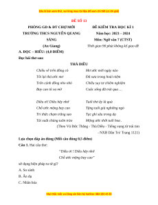 A. ĐỌC – HIỂU: (4,0 ĐIỂM) Đọc bài thơ sau: THẢ DIỀU
