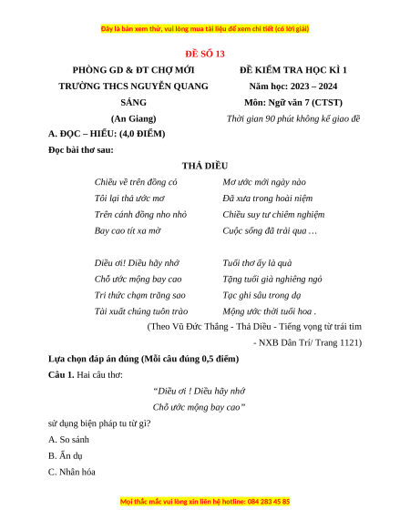 Môn: Ngữ văn 7 (CTST) (An Giang)