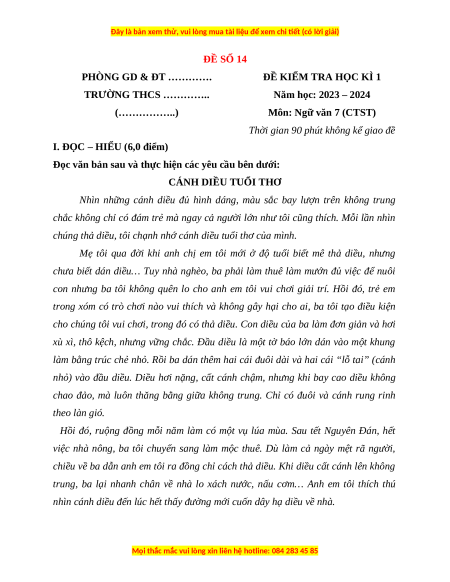 Đề thi cuối kì 1 Ngữ Văn 7 Chân trời sáng tạo (Đề 14)