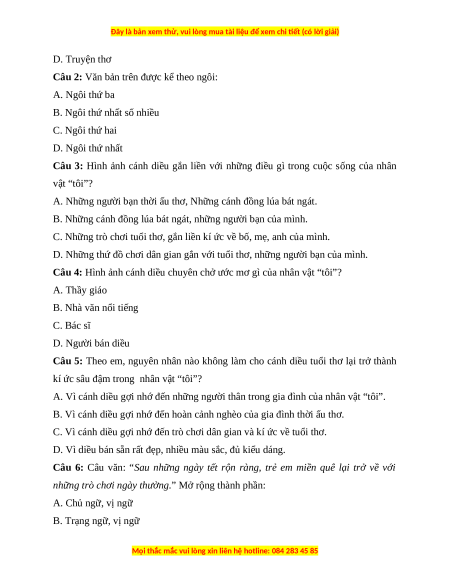 Câu 2: Văn bản trên được kể theo ngôi: A. Ngôi thứ ba