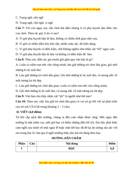 Câu 10: Theo em, việc lưu giữ trò chơi dân gian có vai trò gì đối với sự phát triển