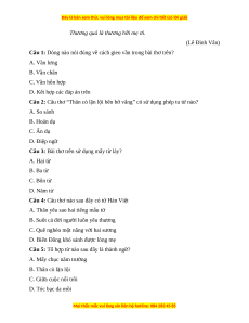 Câu 2: Câu thơ “Thân cò lặn lội bên bờ vắng” có sử dụng phép tu từ nào? A. So sánh B. Hoán dụ C. Ẩn dụ D. Điệp ngữ