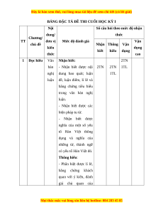 Số câu hỏi theo mức độ nhận dung/ thức Chương/ TT đơn vị Mức độ đánh giá Vận chủ đề Nhận Thông Vận kiến dụng biết hiểu dụng thức cao 1 Đọc hiểu Văn Nhận biết: 2TN bản