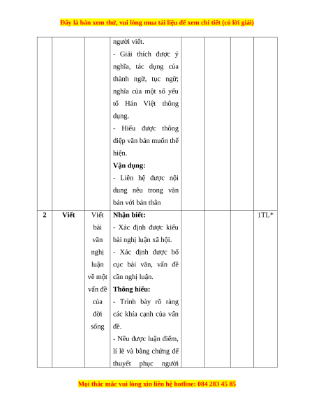 nổi bật ý của bản thân với vấn đề cần bàn luận. - Lời văn sinh động, giàu cảm xúc, có giọng điệu riêng. Tổng số câu 2TN 2TN 2TN 1TL